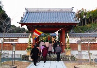 ◎見どころ ◆七福神絵図(八福神図) 女性の酌婦が七福神に酒を勧めているめずらしく貴重な図柄で、作者・作成年代等は不祥。 ◆達磨大師の図…白隠禅師(1685〜1768)作 ◆大ソテツ…樹齢凡そ300年 (注)3、白隠 E海岸山増船寺…毘沙門天霊場 ![]() 御前崎市御前崎町白羽305−1 電話0548−63−2374 ◎宗 派:曹洞宗 ◎ご本尊:釈迦牟尼仏 ◎文化財:地蔵菩薩 ◎沿 革 宝徳2年(1450)創建の真言宗嵯峨御所大覚寺の法を嗣ぐ寺院で、もと蔵泉寺と称していたが、その後戦乱の中で寺運の衰退を見たが、文禄2年(1593)袋井龍巣院7世玄室龍頓大和尚は、由緒あるこの寺院の衰滅を惜しみ、近郷の人々の篤い帰依を受け、堂宇を再興して曹洞宗に改宗した。 寛文6年(1666)4世住持・山蒼簡沢大和尚の時、この地に住む漁夫の安全・幸福を願って増船寺と改称した。9世大宗和尚の時、小松原の地から海岸に近い現住地に移った。