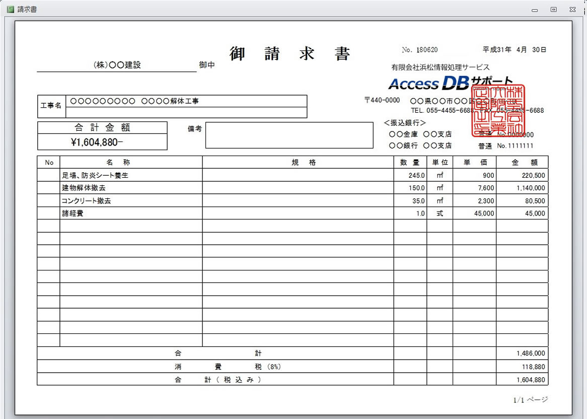 Access 業務管理システム・見積書システム インボイス 適格請求書への改造をしました。